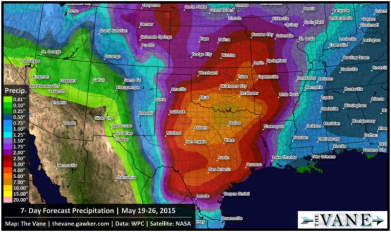 It just keeps getting worse. The gully-washers and toad-stranglers are in full force across Texas and Oklahoma at this hour as the region stares down the barrel of more heavy rain and flooding after years of thirsting for some delicious sky water. Some spots could see double-digit rainfall totals by this time next week.